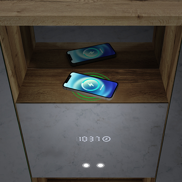 Use the induction located in the middle of the cabinet during your morning toilet to charge your phone. The process will begin when you place your smartphone in the designated area.