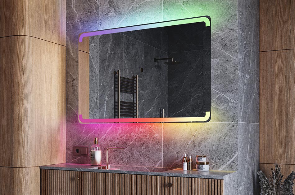 What will surprise you with our LED mirror ? Up and down backlightis one of its many additional options. You can choose from lighting of any color and color temperature, which you can turn on with a single touch of your hand or using the remote control included in the set.
