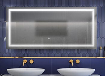 Touch switch so you can easily turn the LED lights on and off. Switch located in the middle of the mirror width at the bottom edge. The switch is illuminated independently of the mirror lighting.
